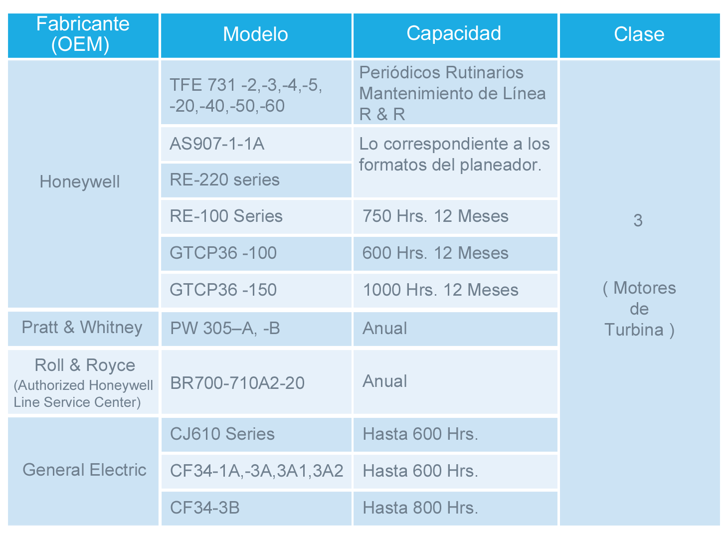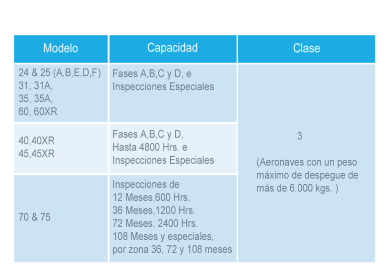 Capacidades de Taller Motores y Planeadores